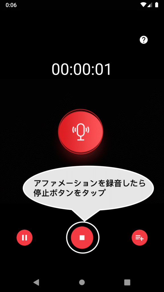 まず、アファメーションを決めましょう!メイン画面でアファメーションを録音します。
