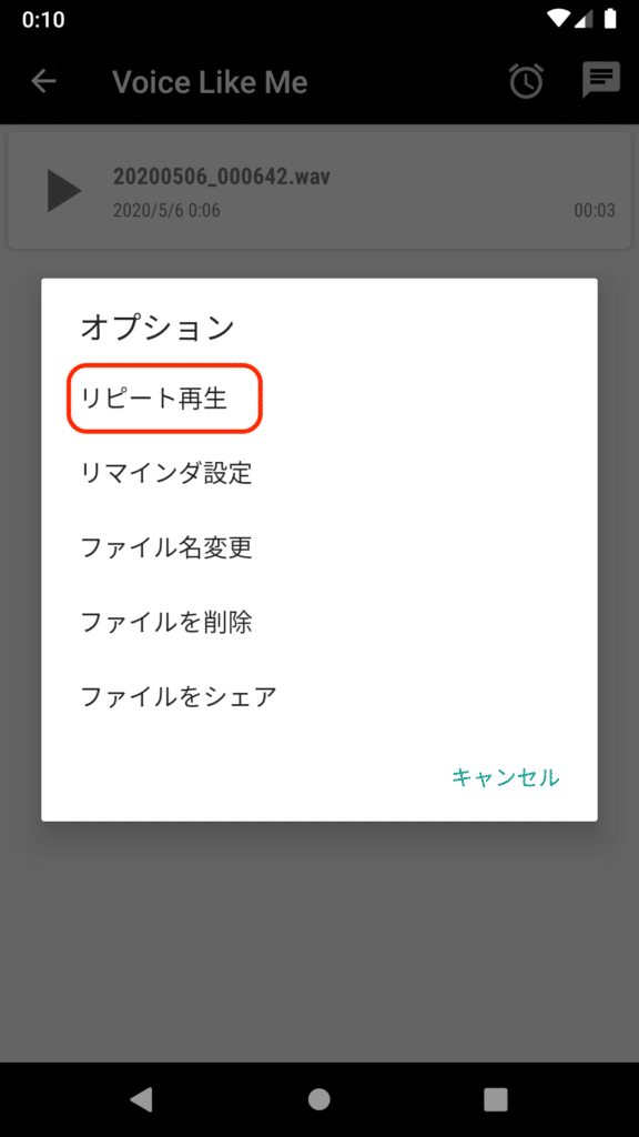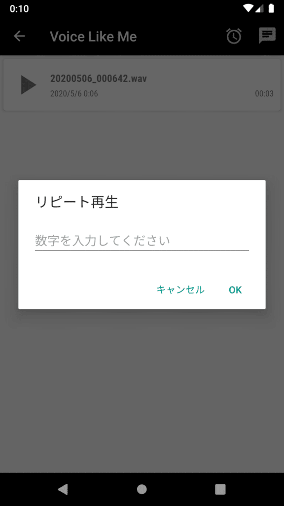 4. 再生したいファイルを選択して、リピート再生。数字を入力してOKをタップ。