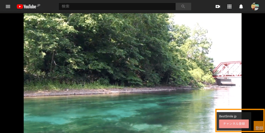 7. 自分のチャンネルの動画で、設定した登録ボタンが表示されることを確認する